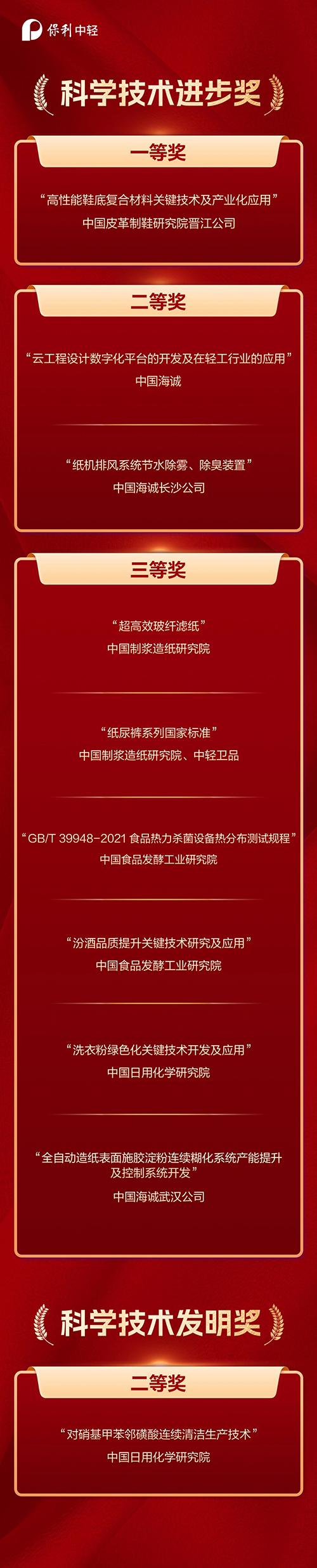 新春喜讯 | 保利中轻多项成果获中国轻工业联合会科学技术奖