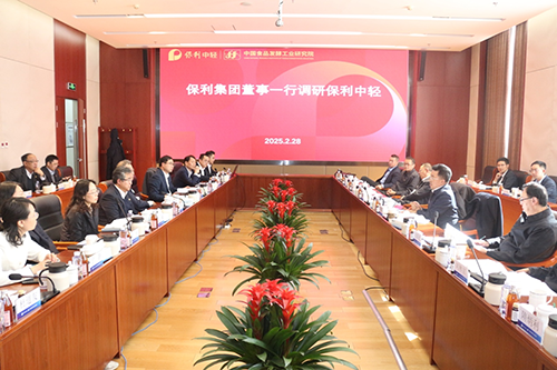 保利集团运营管理中心主任刘颖川、董事会秘书齐爽、战略投资中心副主任缪国鹏及董事会办公室工作人员陪同调研。保利中轻副总经理张曦、总会计师高永林,保利中轻副总经理、中国食品院董事长肖丹,保利中轻有关部门负责同志和中国食品院部分班子成员参与调研和座谈交流。