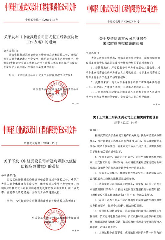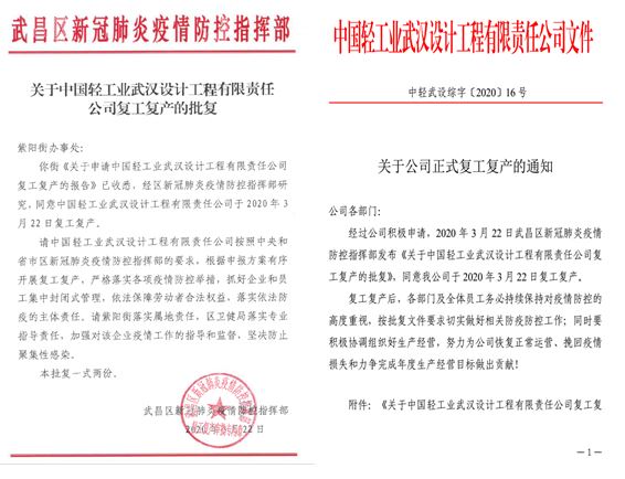 历经2个月的抗疫攻坚,在武汉新冠肺炎疫情防控形势持续向好之时,经武昌区新冠肺炎疫情防控指挥部批复,中轻武设公司于3月23日正式复工复产。