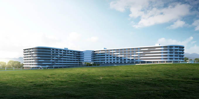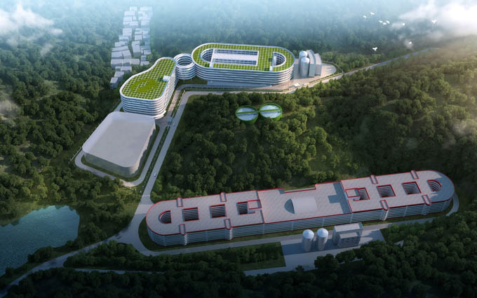 在建筑设计方面,新建车间充分考虑与已建制曲中心的整体协调,打造制曲"双航母"。建筑立面连续中又富于变化,与自然环境的起伏山峦遥相呼应,使建筑与周围环境融为一体。建筑采用圆润造型,屋顶绿化植入巨型logo,彰显绿色生态的企业形象。采用白色舒展的外廊栏板与深灰色实墙形成对比,整体流线型的动感象征新建制曲车间"航母"在海上乘风破浪,激流勇进。