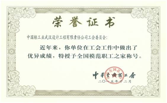 月,公司工会荣获"全国模范职工之家"称号。本次中华全国总工会"全国模范职工之家"评选名额有限,评比困难较大,但是中轻武设公司工会历经层层考验,最终拿下此项殊荣,这份荣誉来之不易!