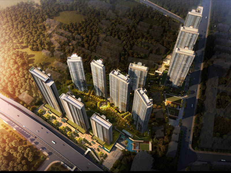 在项目设计中,由于用地状极不规则,地块周边现状复杂,项目设计团队多次实地踏勘,并与业主进行讨论,共同研究解决方案。本着尊重自然,顺应地形的原则,设计将每栋楼的位置、角度、高度均做了精心推演计算,布局中心大景观花园,致力于完善城市空间,提升区域形象,提高居民生活质量,打造和谐宜人的高端品质社区。