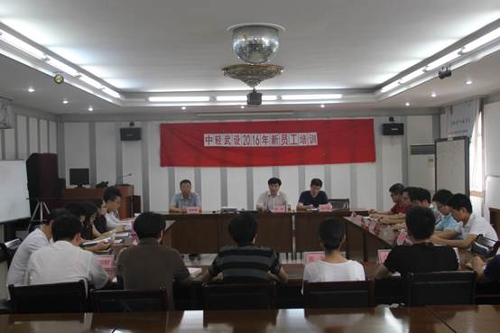 2016年7月14日至15日,由公司人力资源部组织的中轻武设2016年度新员工培训在公司416会议室火热开班。培训邀请了公司领导、相关职能部门、公司团委、上年度优秀员工代表等参加。本年度新入职的18名员工参加了本次培训。