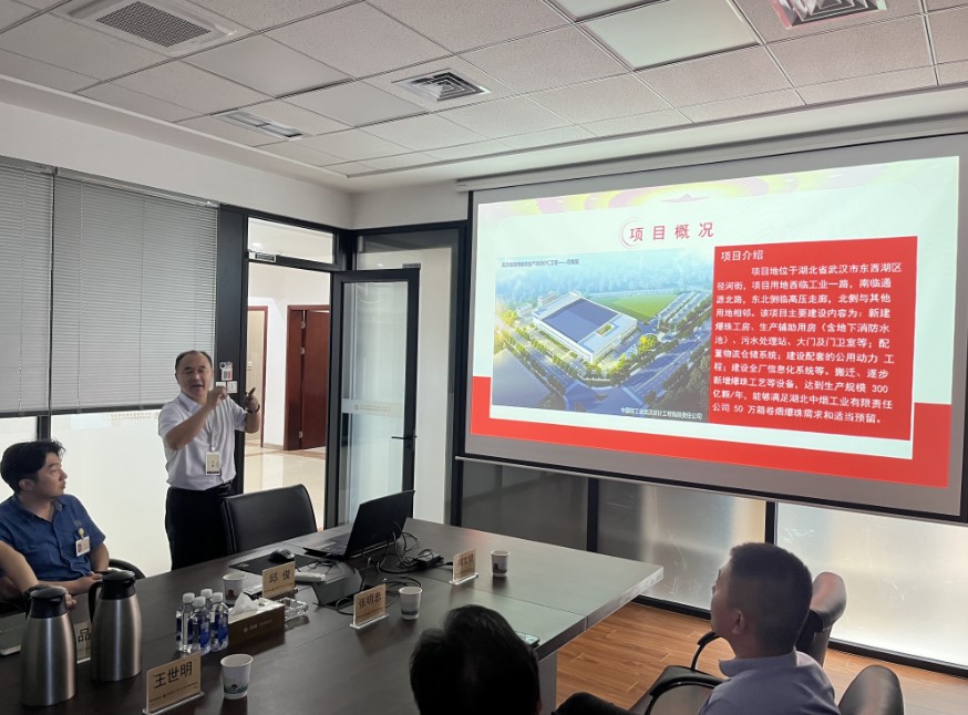 2023年7月28日上午,保利中轻纪委书记肖金龙同志一行四人赴中国海诚武汉公司黄鹤楼烟用爆珠生产项目EPC工程(以下简称爆珠项目)项目现场进行调研,检查爆珠项目的竣工情况。武汉公司总经理王进、副总经理胡正阳陪同。
