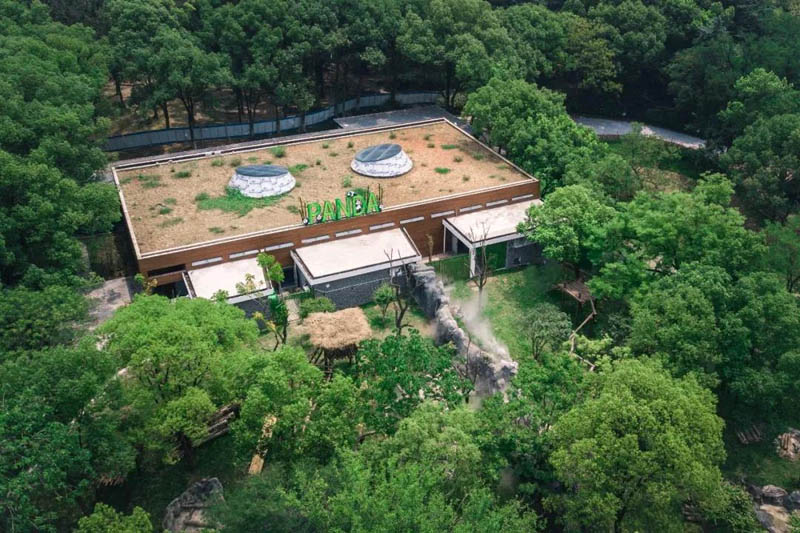 新大熊猫馆严格按照《大熊猫国内借展场馆设计规范》(LY/T 2769-2016)等规范进行设计、施工。馆舍总占地5100平方米,场馆面积为1100平方米,外活动场地面积1800平方米,周边配套生态塘等景观区4100平方米。从空中俯看,整个场馆如同置身于森林之中。