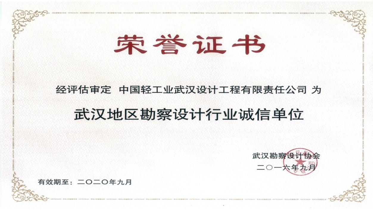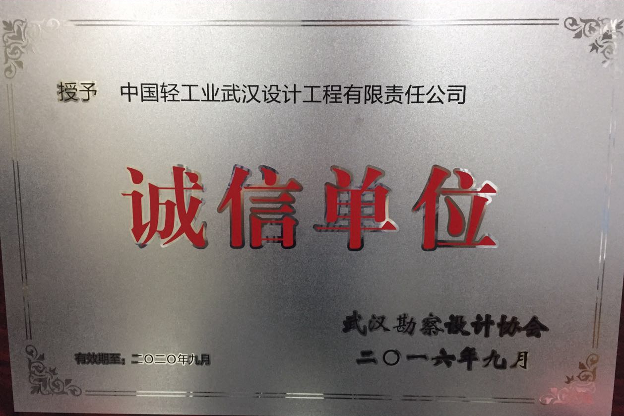 热烈祝贺我公司荣获武汉勘察设计协会颁发“诚信单位”荣誉称号,该荣誉的获得是公司坚持诚信建设的重要成果。