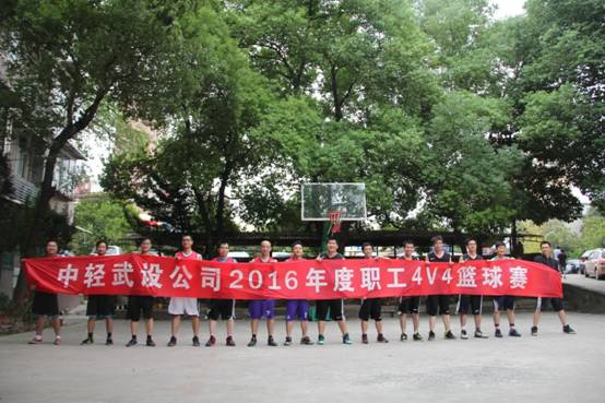 2016年9月27日—9月28日,由公司工会、团委和公司篮球队联合举办的"中轻武设2016年度职工4V4篮球赛"顺利举行。本次比赛秉承的主题是"我运动,我健康,我快乐",口号是"让身体在球场上飞驰,让梦想在篮筐中绽放"。公司党委书记、董事长周波为此次比赛开球。