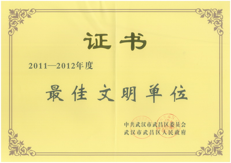 我公司荣获2011-2012年度区级最佳文明单位称号