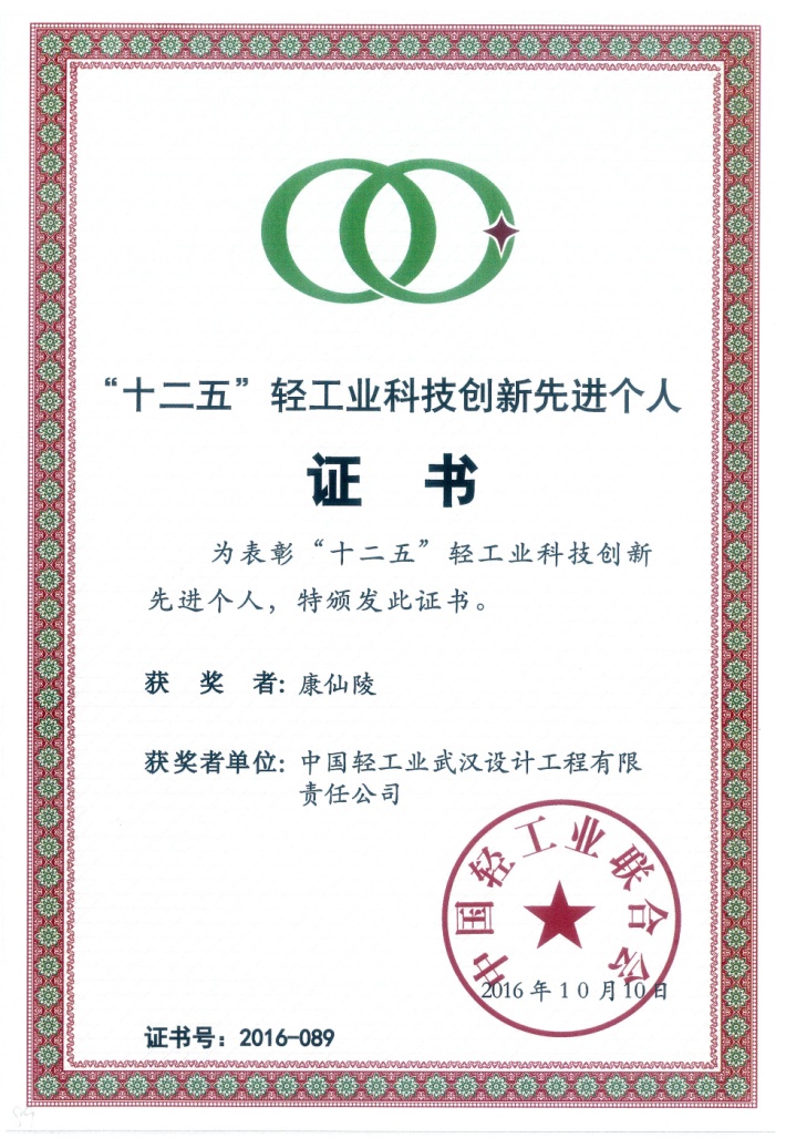 近日,全国轻工业科技大会在北京召开,我公司康仙陵同志荣获