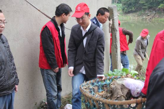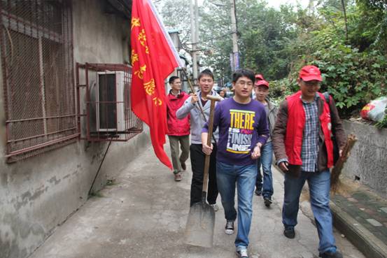 2013年11月1日下午,中轻武设公司二十名雷锋服务志愿者在紫阳街街道办事处副主任余继芳和紫阳街街道办事处文明办主任杨文星的带领下,联合紫阳街办事处城管执法人员和街道社区群干,对紫阳街辖区内的京广铁路沿线两侧及周边可视范围内的积存生活垃圾及废弃杂物进行了清理。