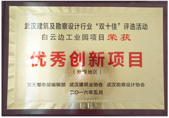 建筑是城市的名片,是凝固的音乐;而设计是建筑的灵魂,是时代的音符。731日,2016年武汉建筑及勘察设计行业"双十佳"评选活动在东湖之滨的楚天传媒大厦举行颁奖典礼。此次评选活动历时5个多月,有23万余人次参与票选,堪称武汉城建行业的"奥斯卡"。由我公司工业工程事业二部设计的"白云边工业园"项目从报名参评的188个作品中脱颖而出,斩获"优秀创新项目(外埠)"奖。